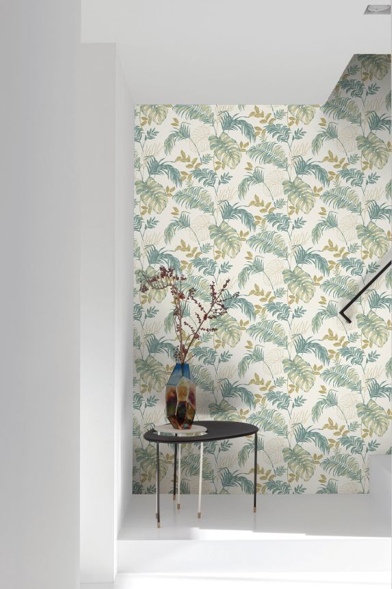 Ockergrüne Tapete mit tropischen Blättern, A64302, Vavex 2025 Ockergrüne Tapete mit tropischen Blättern, A64302, Vavex 2025