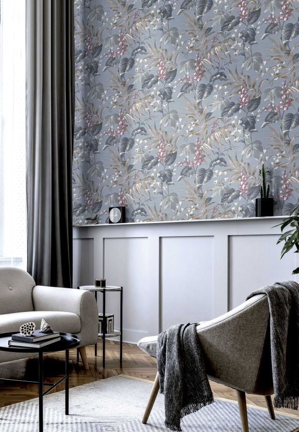 Blaue Tapete mit Blumen und Vögeln, 28856, Thema, Cristiana Masi by Parato Blaue Tapete mit Blumen und Vögeln, 28856, Thema, Cristiana Masi by Parato