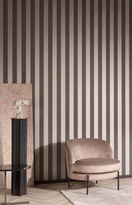 Schwarz-bronze gestreifte Tapete, OTH409, Othello, Zoom by Masureel Schwarz-bronze gestreifte Tapete, OTH409, Othello, Zoom by Masureel