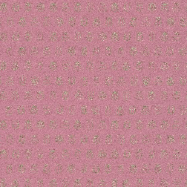 Regelmäßiges Muster mit goldenen Käfern auf rosa Vliestapete.