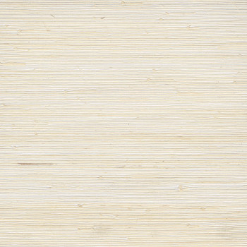 Handgewebte Grastapete aus gebleichten Feldgräsern in Wollweiß mit vereinzelten Knoten.