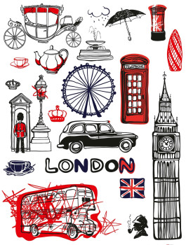 Selbstklebende Wanddekoration 65 x 85 cm, London. Ändern Sie schnell und einfach das Aussehen Ihres Interieurs! Wir empfehlen, auf einer glatten Oberfläche zu kleben.