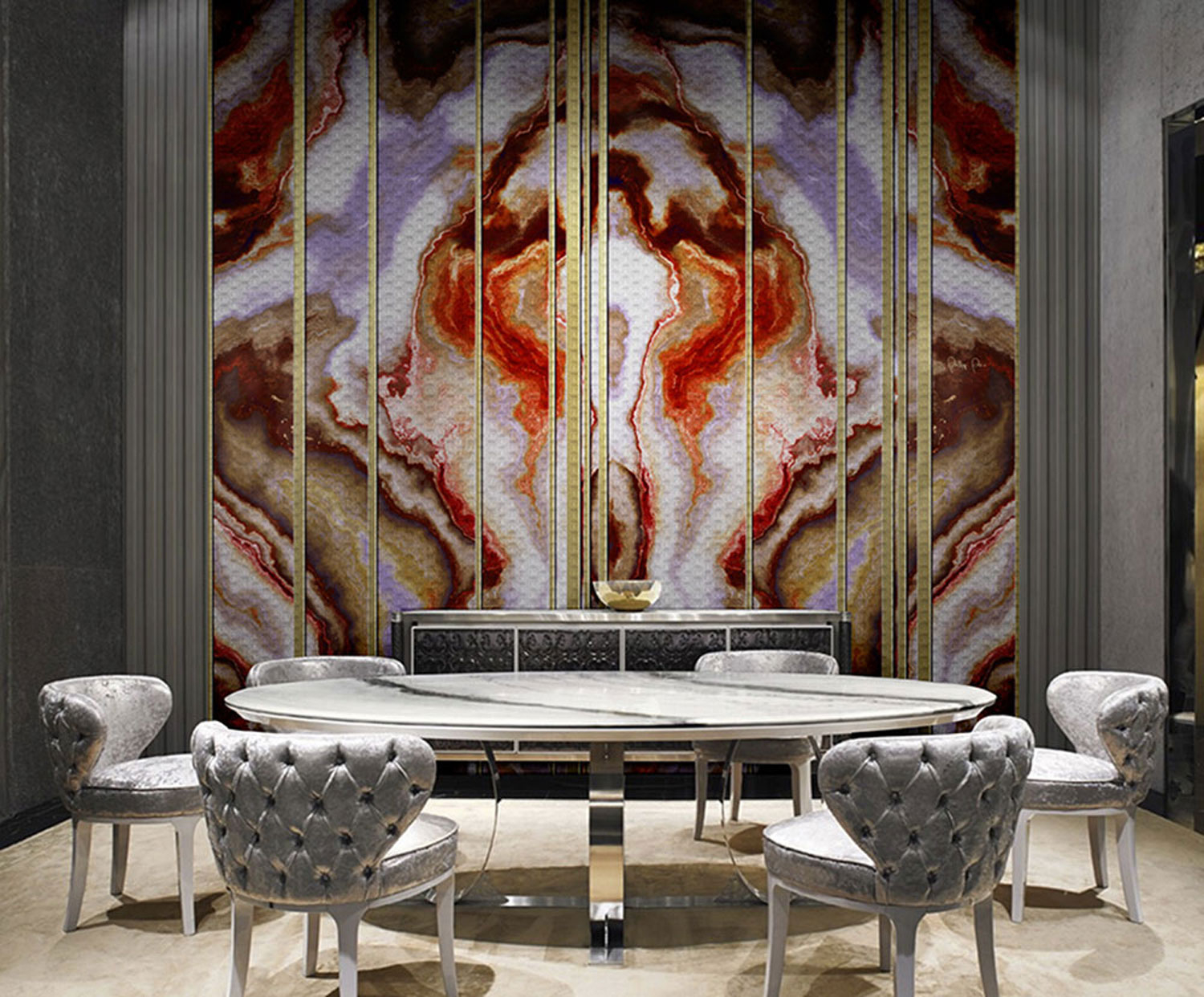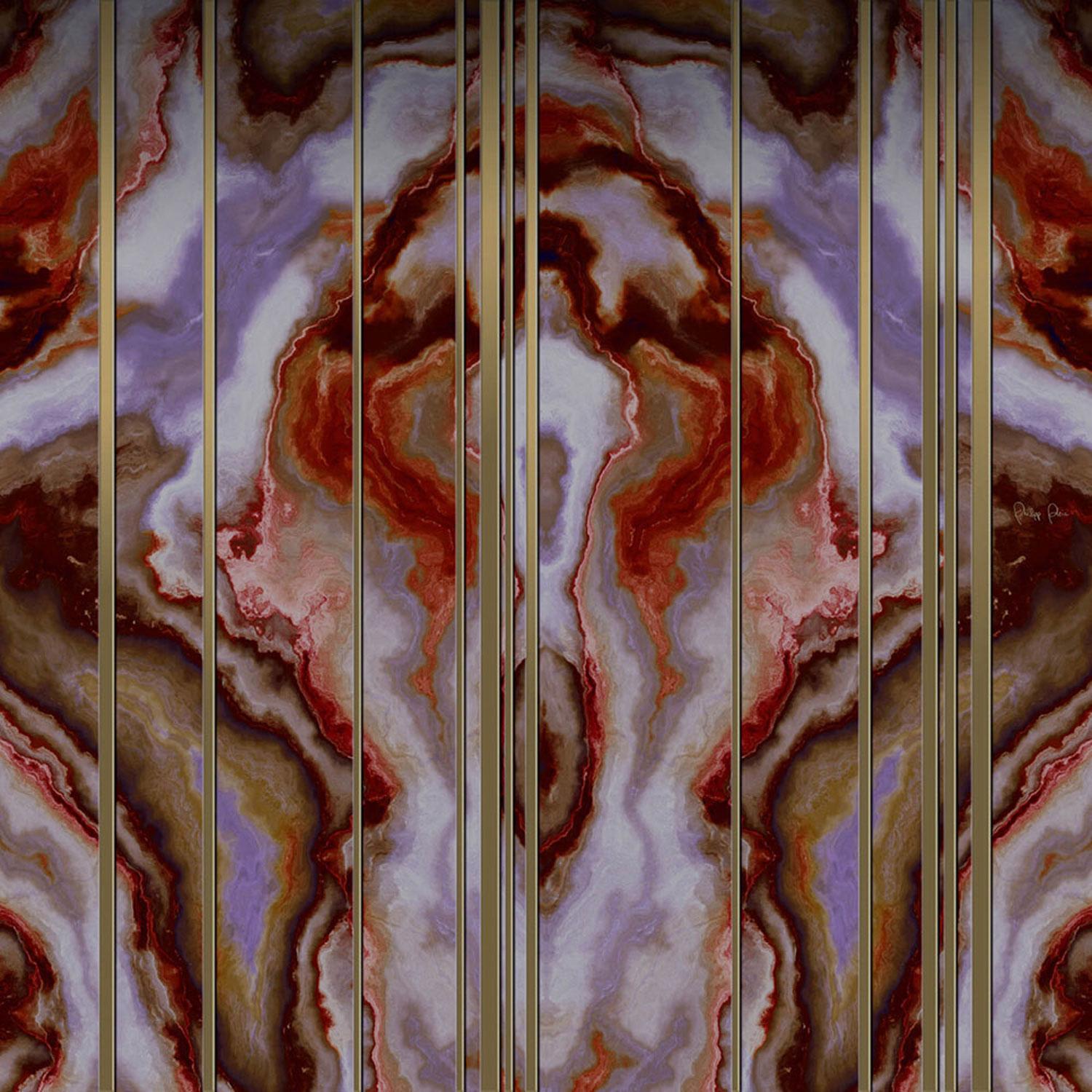 Luxuriöse Fototapete mit Achat-Motiv und Metallic-Streifen.