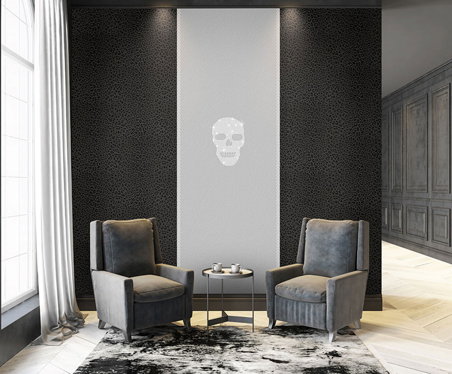 Schwarze Fototapete Totenkopf mit Kristallen Z80080 Philipp Plein, Zambaiti Parati