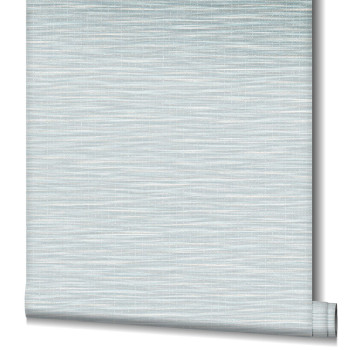 Luxuriöse, graublaue Vliestapete mit Vinyloberfläche - gewebtes Raffia-Muster.