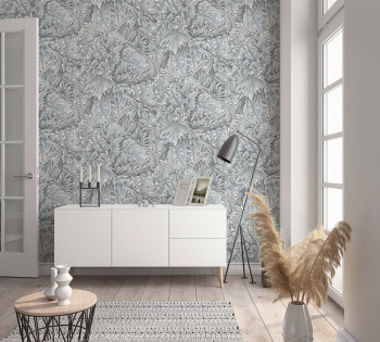 Graublaue Luxustapete mit Blättern 33306, Botanica, Marburg