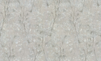 Metallische gold-cremefarbene Luxustapete mit einem Muster aus Zweigen und Blättern.