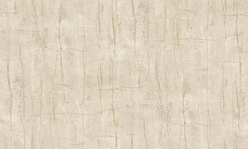 Luxustapete mit beige-goldenen Barockornamenten, auf einem Putz imitierenden Hintergrund.
