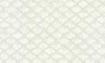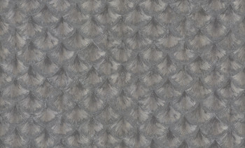 Silber-goldene Luxustapete mit einem geometrischen Muster in Form von Fischschuppen mit goldenen Reflexen.