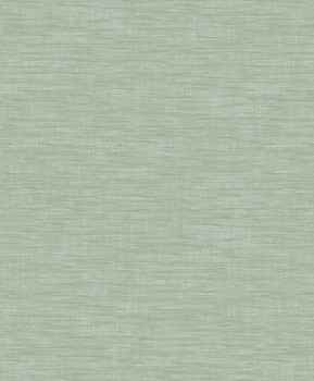Halbglänzende grüne Vliestapete, deren gestreifte Textur an die Struktur von Stoff erinnert.