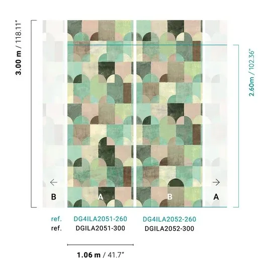 Vlies-Fototapete, geometrisches Bogenmuster. Kombinierbar mit DGILA2052 Fototapete für größere Breite - siehe Foto
