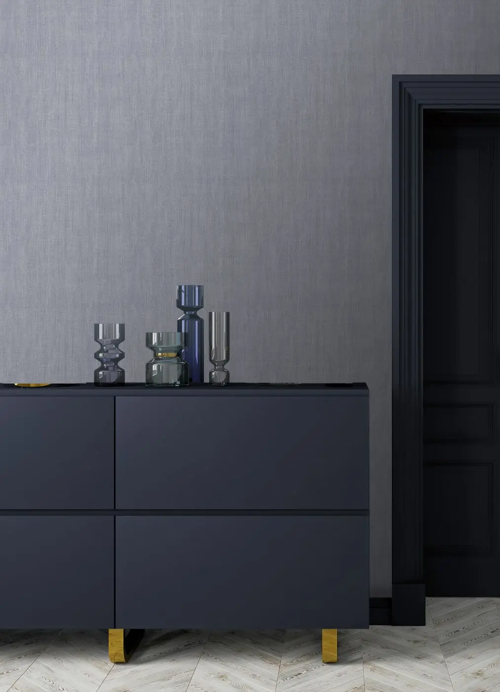 Dunkelblaue Vliestapete mit Vinyloberfläche, Textilimitat.