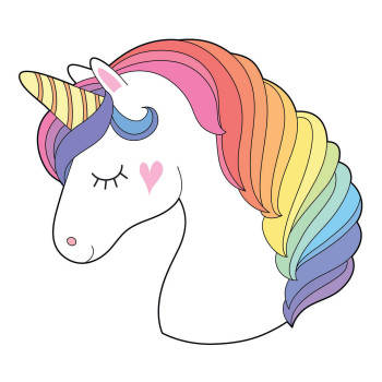 Vorgeklebte Wanddekoration aus Vlies - Einhorn. Die Dekoration hat auf der Rückseite einen Kleber, der durch Auftragen von Wasser aktiviert wird.