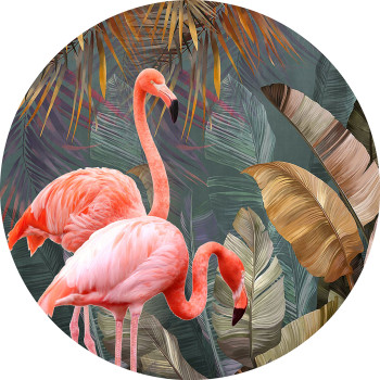 Vorgeklebte kreisförmige Vliestapete mit Flamingos, PLC020, Platinum Shapes, Decoprint