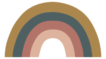 Vorgeklebte Wanddekoration aus Vlies - Regenbogen. Die Dekoration hat auf der Rückseite einen Kleber, der durch Auftragen von Wasser aktiviert wird.