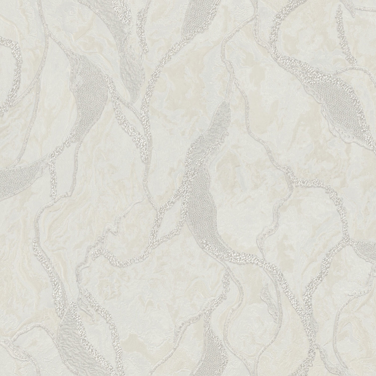 Luxuriöse Vliestapete mit Vinyloberfläche - Nachahmung von barockem Stuck, geprägte Textur metallischen Cremetönen, stellenweise mit silbernem Glitzer. Leicht mit verwandten Tapeten zu kombinieren.
