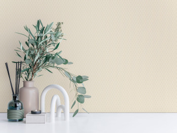 Luxuriöse Vliestapete mit Vinyloberfläche - halbglänzend, hellbeige, fein geprägte Rauten, Stoffstruktur. Das Foto des Innenraums dient nur zur Veranschaulichung – verschiedene Farben.