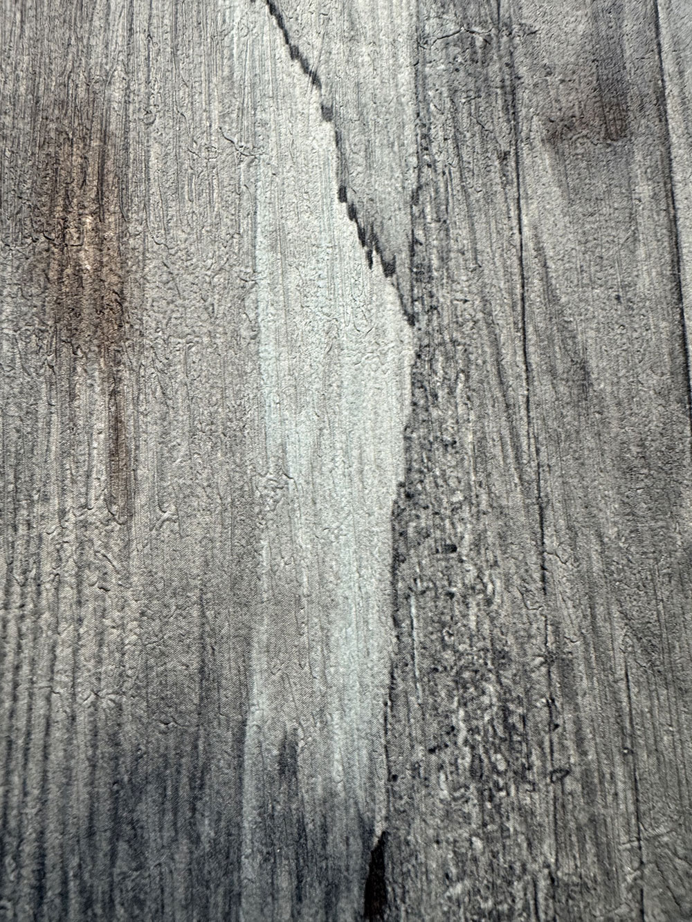 Vliestapete in Holzoptik in Grau- und Brauntönen. Das Foto des Innenraums dient nur zur Veranschaulichung.