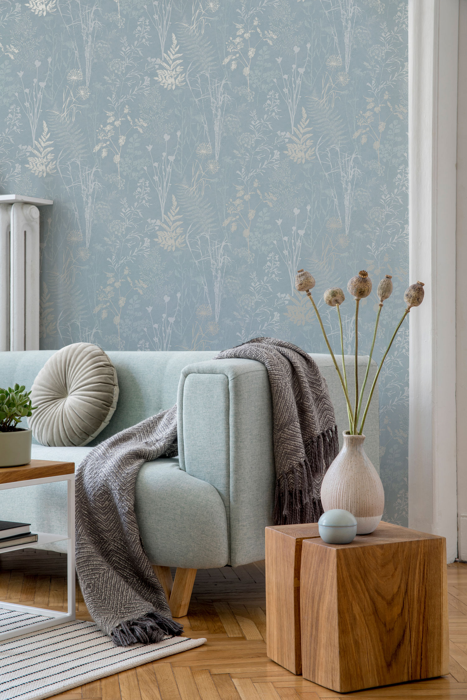 Blaue Tapete, Blumen, Blätter, 120715, Vavex 2025