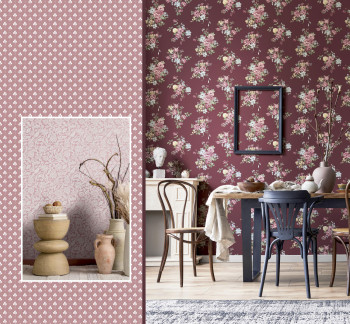 Weinrote Vliestapete mit Blumenmuster, 12303, Fiori Country, Parato