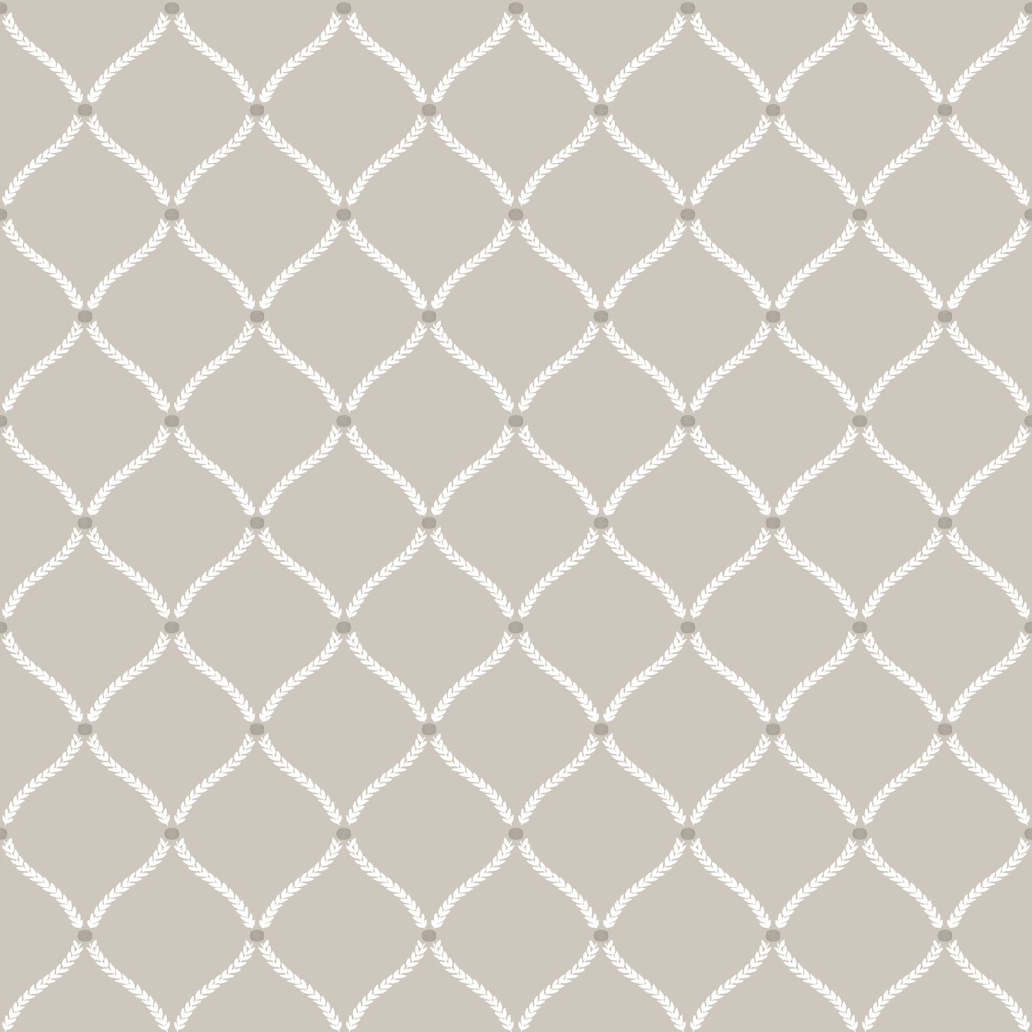 Matte, graue Vliestapete mit geometrischem Ornamentmuster in Weiß, der Hintergrund imitiert einen feinen Putz.