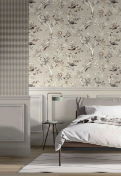 Tapeten mit floralen Mustern von Blumen mit Vögeln, mit dem Muster der Blätter und Blumen wird das Innere in jedem Stil zu ergänzen.