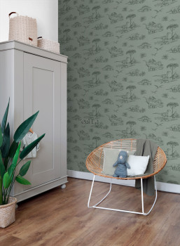 Grüne Kindertapete mit Dinosauriern 139358, To the Moon and Back, Esta Home