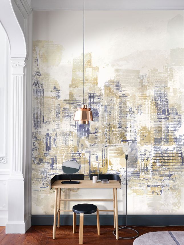 Graue Vlies-Wandbilder mit Stadtmotiv. Das Innenfoto dient nur zur Illustration - verschiedene Farben. Kombinierbar mit DG3CIT1012 Fototapete für größere Breite - siehe Foto.