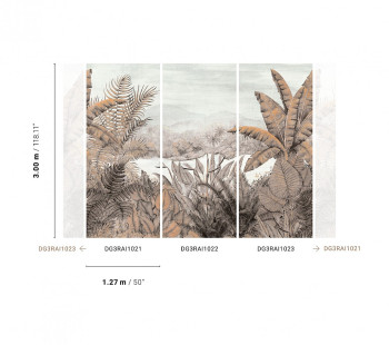 Vlies-Wandbilder mit Tropenwald- und Palmenmotiv. Das Innenfoto dient nur zur Illustration. Kombinierbar mit den Fototapeten DG33RAI1021 und DG3RAI1022 für größere Breite - siehe Foto.
