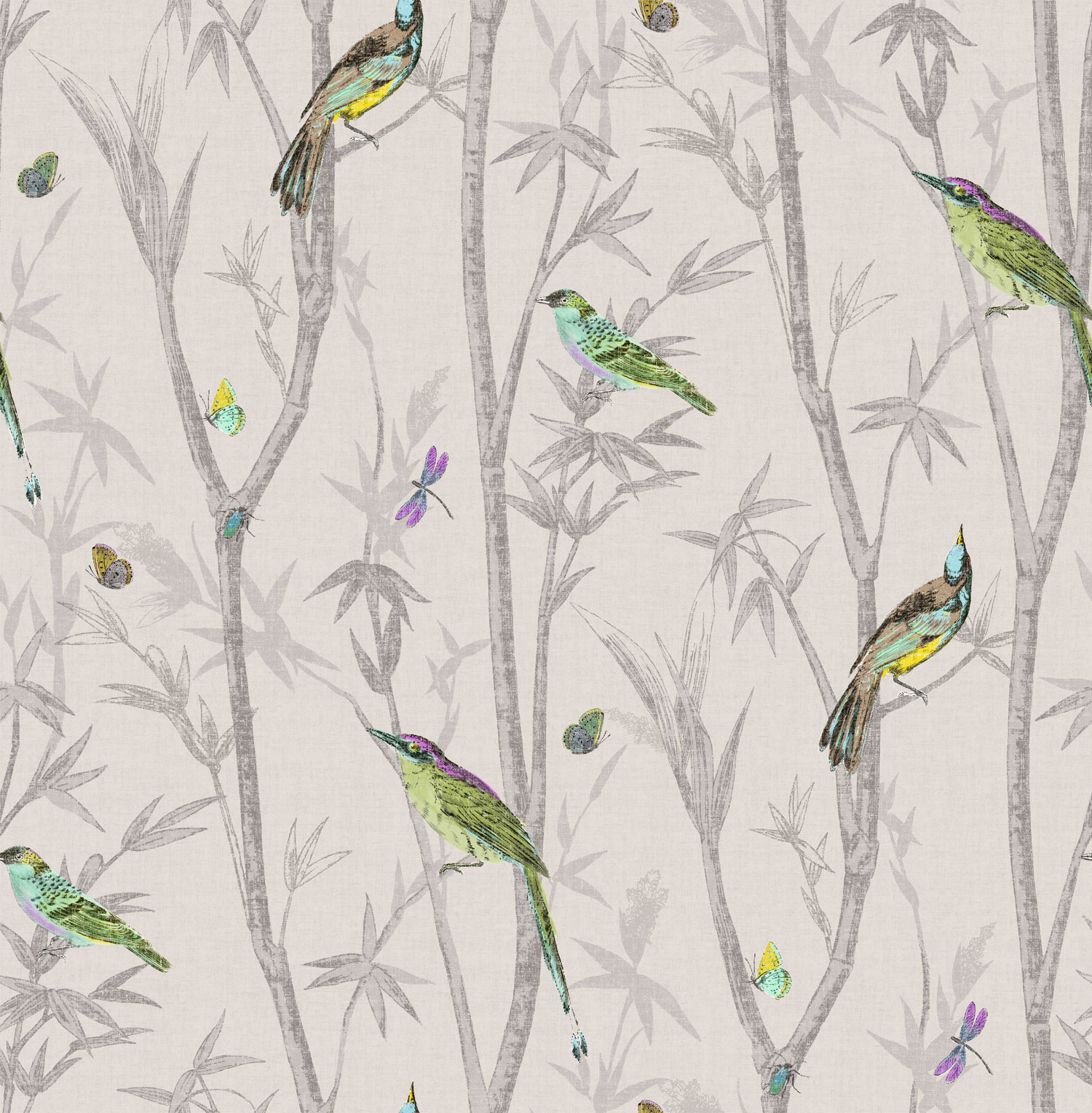 Glatte grau-beige Vliestapete, Motiv aus Ästen mit Vögeln und Schmetterlingen. Verleihen Sie Ihrem Zuhause mit diesem wunderschönen Tapetenmuster einen Hauch von Natur. Chinoiserie Bird Trail ist ein klassisches Muster mit Vögeln und Schmetterlingen. Die hinzugefügten Farben erwecken diese Tapete zum Leben und verleihen ihr gleichzeitig eine moderne Note. Dieses auf mattem Papier gedruckte Design hat eine luxuriöse Oberfläche und lässt sich leicht an die Wand kleben, sodass diese Tapete einfach anzubringen ist.