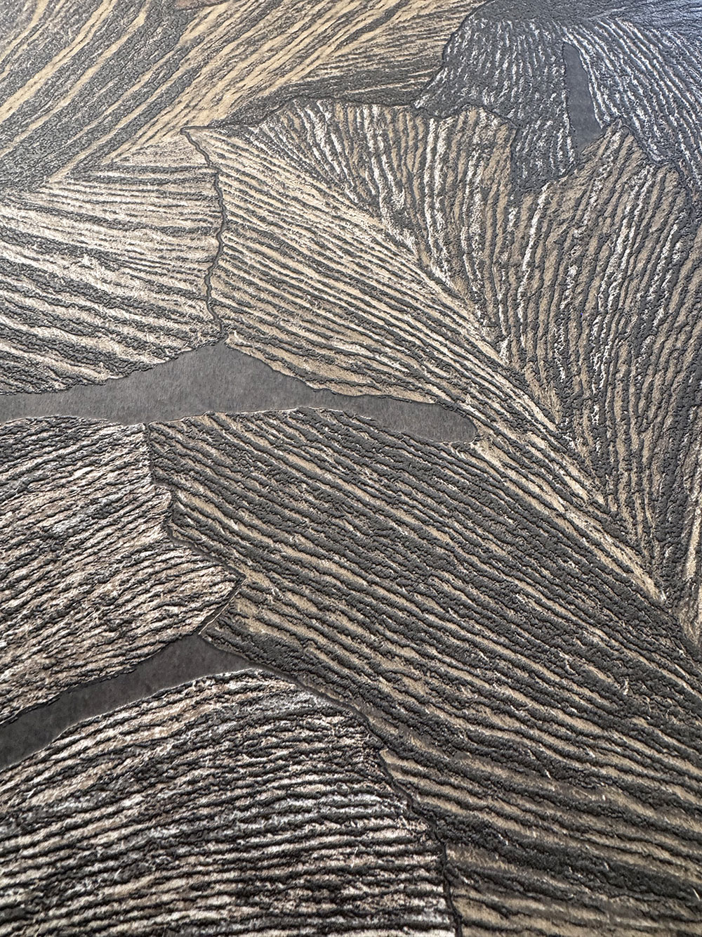 Geprägte Vliestapete, Blätter in Brauntönen.