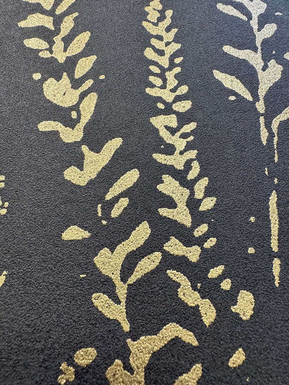 Schwarze Vliestapete mit Vinyloberfläche, Motiv goldener Wiesengräser.
