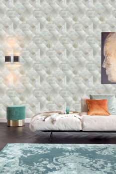 Grau-weiße Tapete mit geometrischen Mustern, UR3221, Universe 4, Grandeco