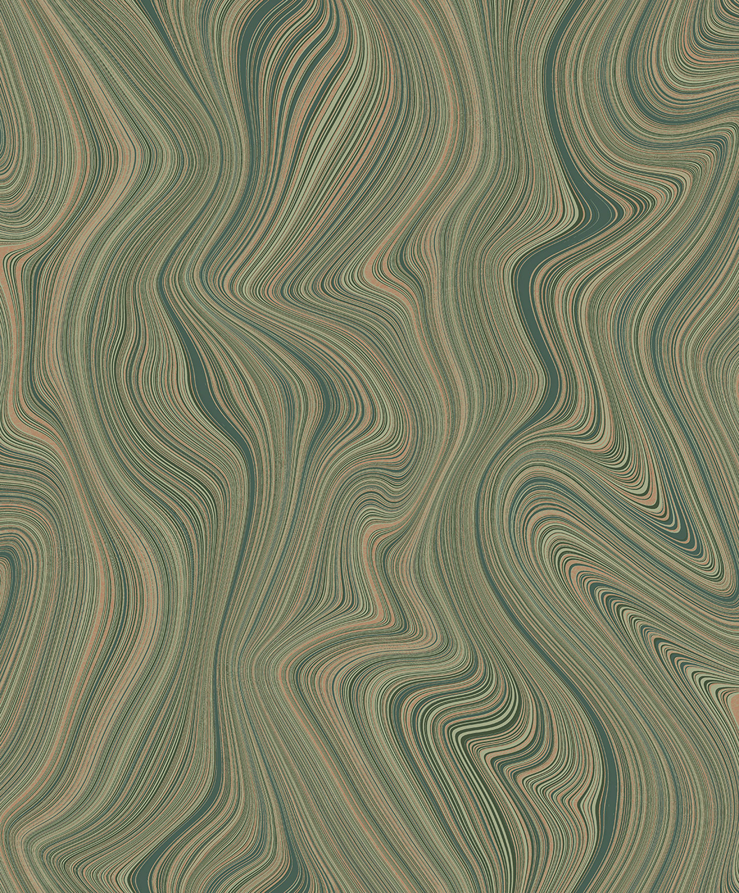 Vliestapete mit Vinyloberfläche, effektvolle Linien in Grün- und Goldtönen.