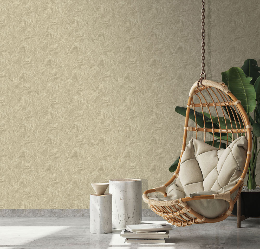Vliestapete mit Vinyloberfläche, grafisches Muster in Beigetönen.