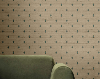 Luxuriöse braune Vliestapete mit Vinyloberfläche, Imitation von feinem Stoff, grünes Rautenmuster.