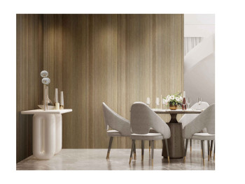 Luxuriöse, dezent geprägte, gestreifte Vliestapete mit Vinyloberfläche, Grau- und Brauntöne.