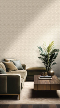 Luxuriöse, unverwechselbar plastische, geometrische Vliestapete mit Vinyloberfläche, elfenbeinfarben, Halbglanz.
