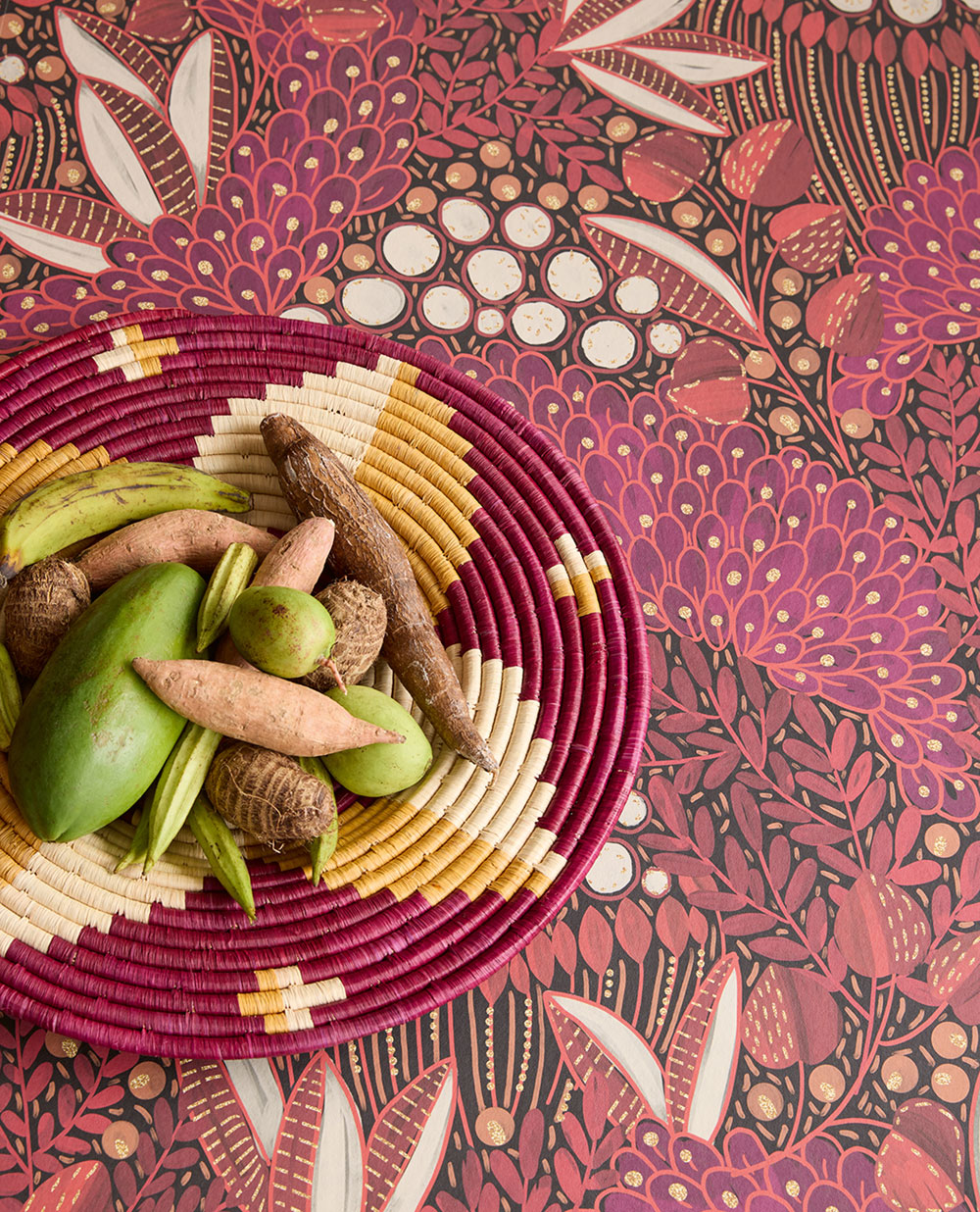 Mit Solange holen Sie sich die Lebensfreude traditioneller afrikanischer Batikmuster direkt an Ihre Wände. Oder entdecken Sie den modernen Nomadenstil mit ikat-inspirierten Designs. Wie wäre es mit einem eleganten Zickzack-Muster mit feinen metallischen Akzenten – eine Hommage an die prachtvollen Kuba-Stoffe? Die Kollektion begeistert mit einer Farbpalette, die an natürliche Töne von Raffiabast und Batikteppichen erinnert – von lebhaften Farben bis zu gedeckten Erdtönen.