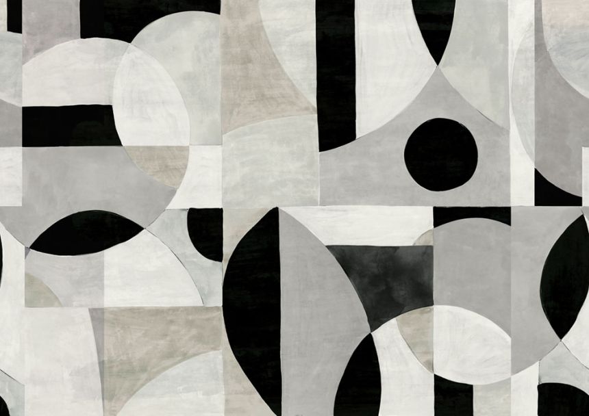 Vlies-Fototapete, geometrisches Muster, in Grau-, Grau-Beige- und Schwarztönen.