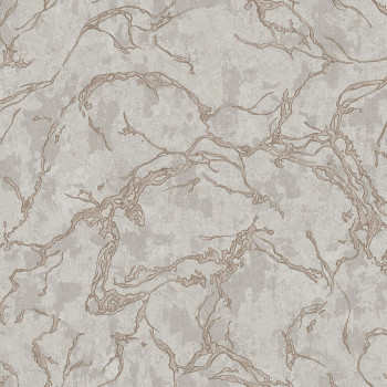 Luxuriöse Vliestapete mit Vinyloberfläche, braun-beiger Hintergrund mit metallischem Halbglanz, Marmorierung mit Gold- und Silberglanz.
