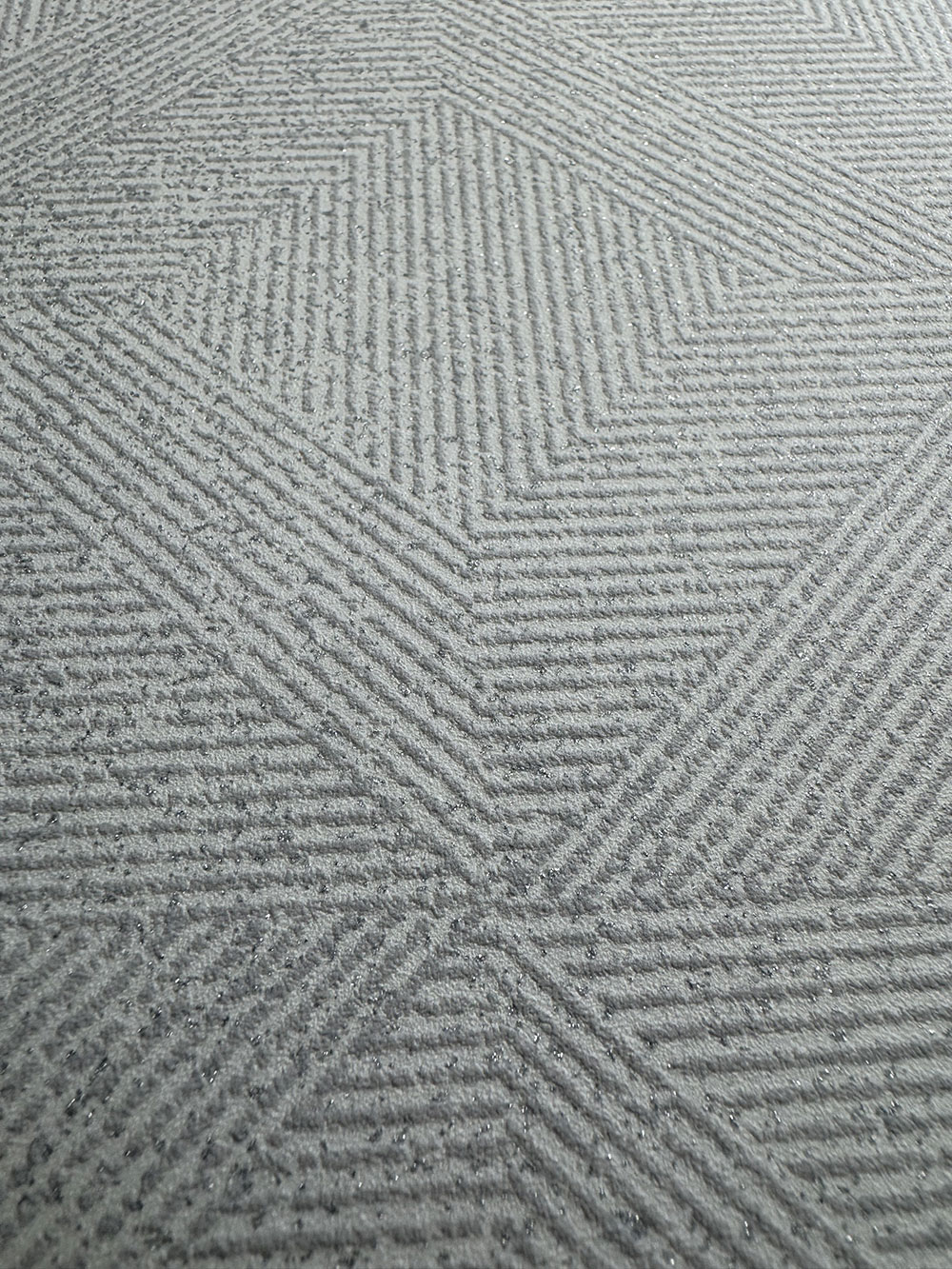 Geometrische Vliestapete, Grautöne, kleiner metallischer Glitzer.