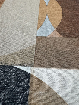 Geometrische Vliestapete, Braun- und Grautöne, Stoffstruktur.