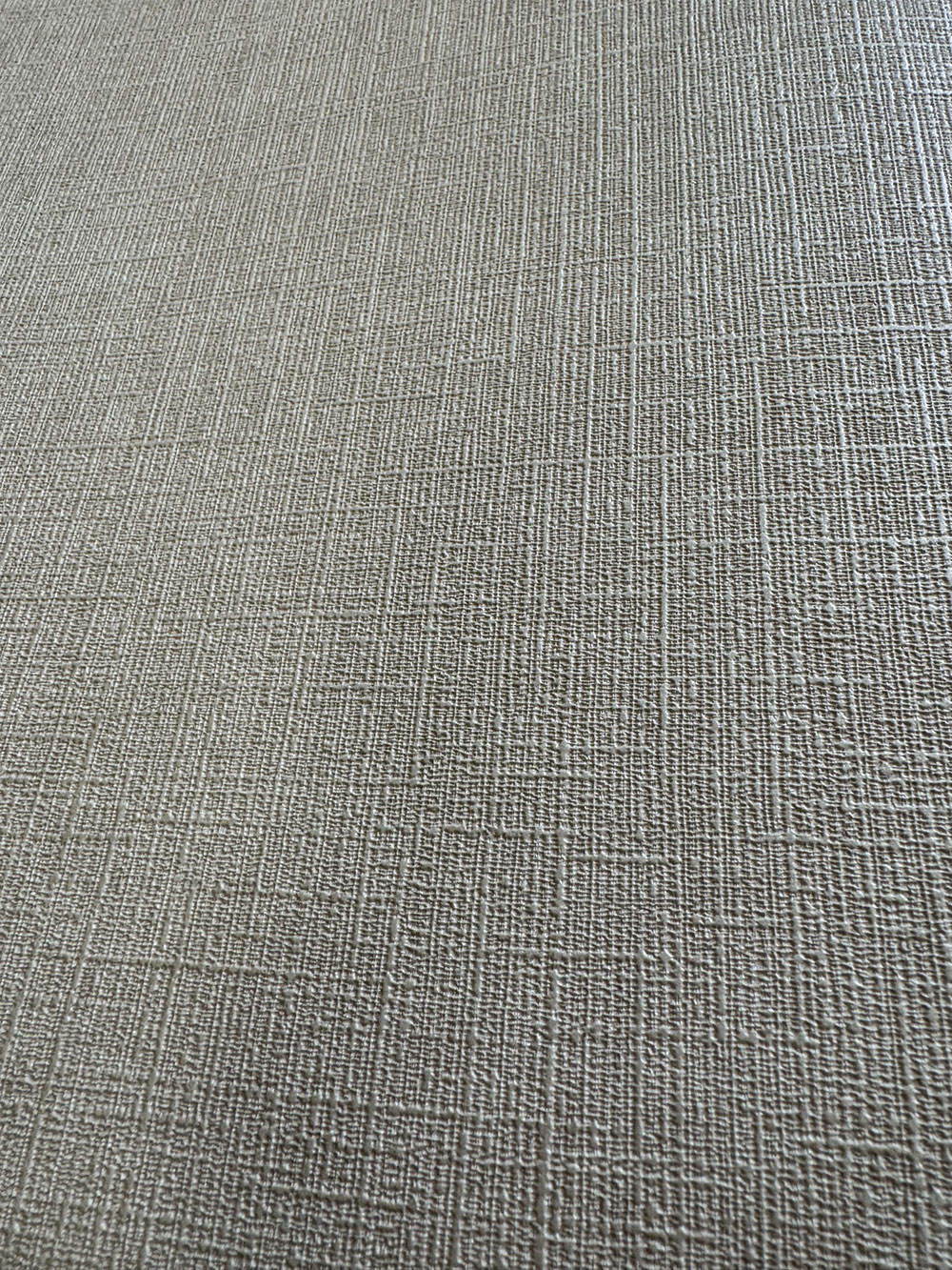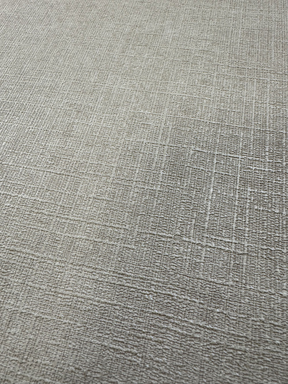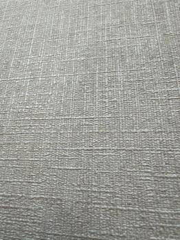 Beige Vliestapete mit Vinyloberfläche, feine Stoffstruktur.