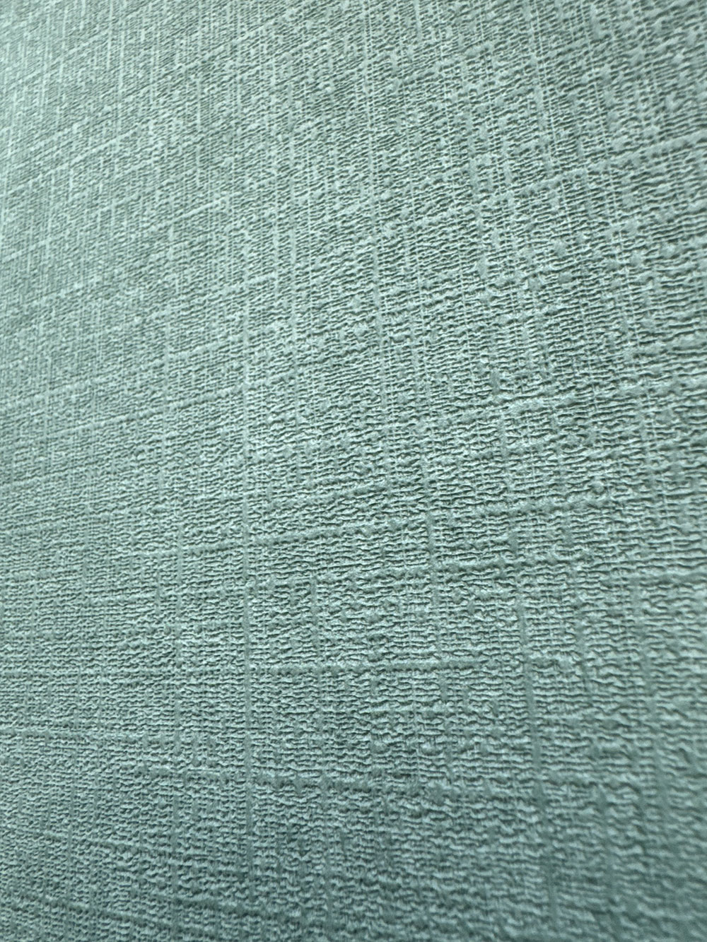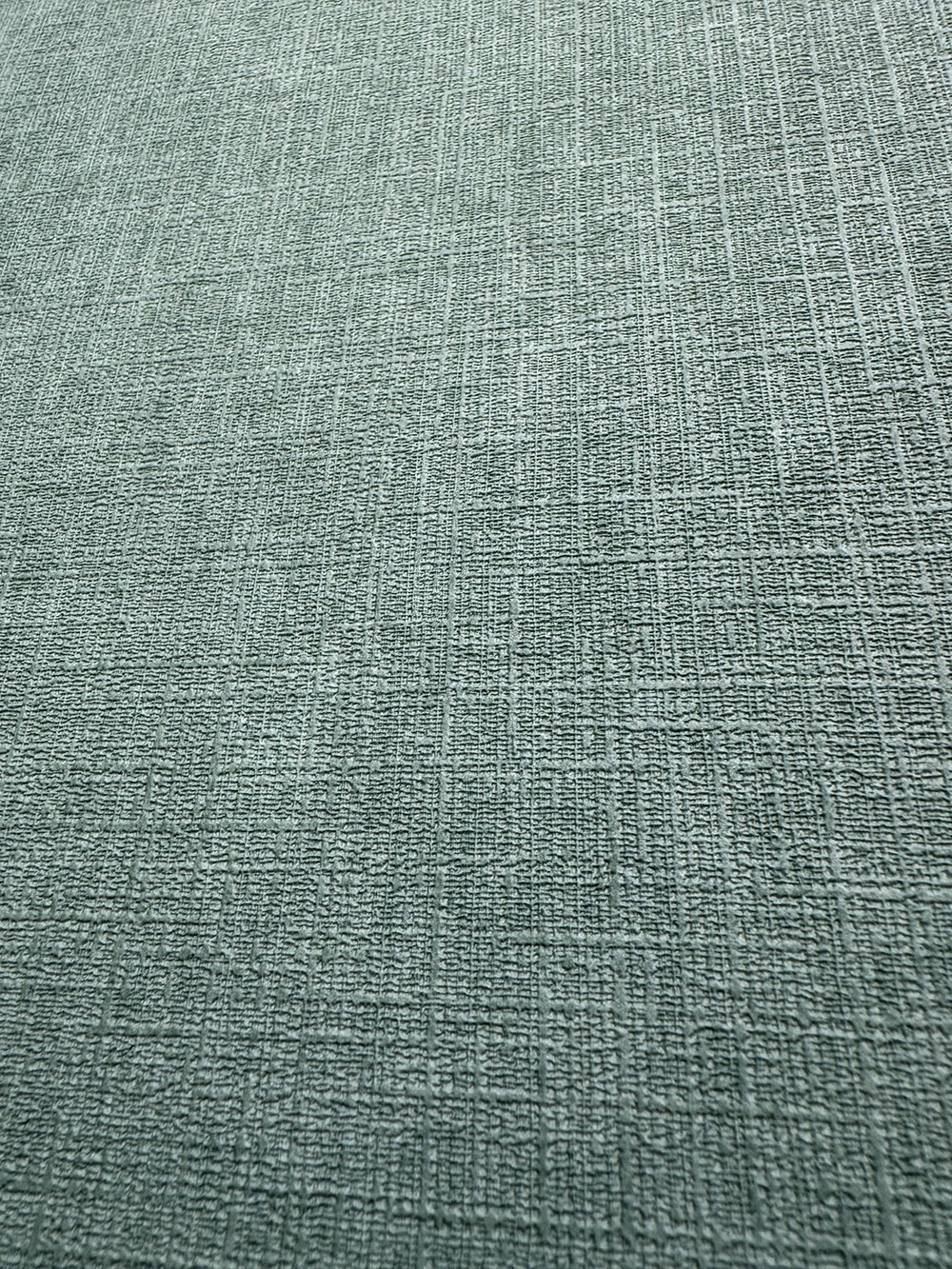 Grüne Vliestapete mit Vinyloberfläche, feine Stoffstruktur.