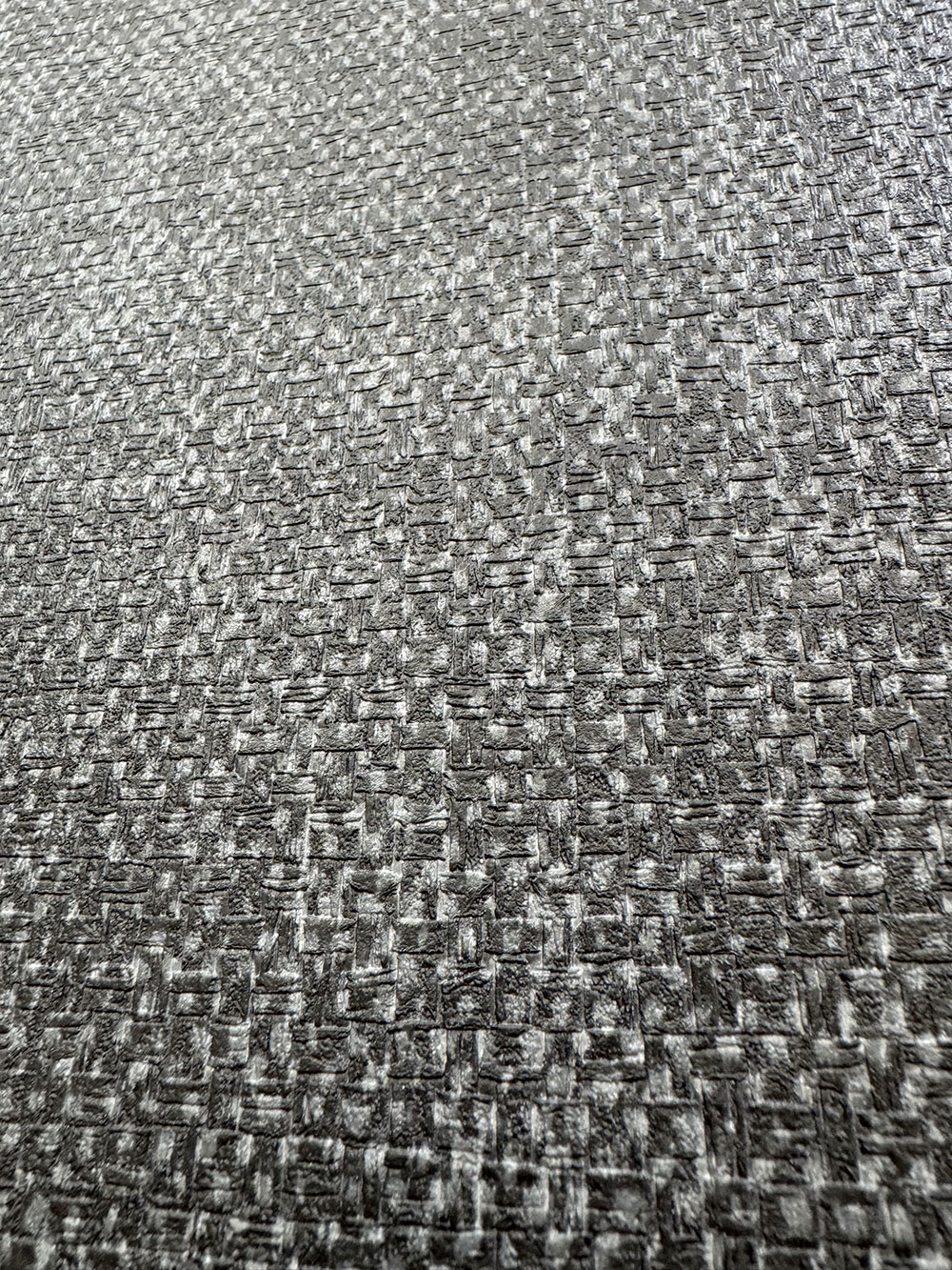 Schwarze Vliestapete, Imitation eines gröberen Stoffes.