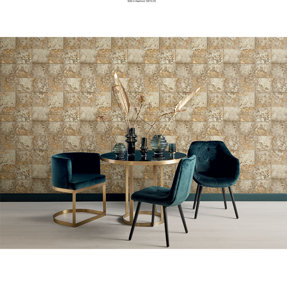 Strapazierfähige, abwaschbare Vinyltapete in Braun- und Beigetönen mit goldenen Reflexen.