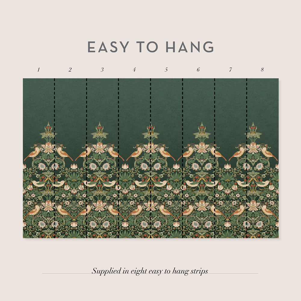 Vlies-Fototapete, grün, Blumen, Vögel, 125310, William Morris At Home