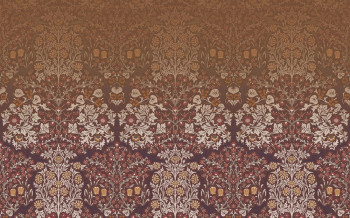 Vliestapete Wandbilder, reiches florales Ornamentmuster in Schwarz-, Grau-, Orange- und Brauntönen.