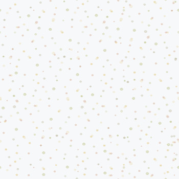 Vliestapete, Motive aus farbigen Punkten/Tupfern in Rosa-, Blau- und Gelbtönen, sehr feine Stoffstruktur.
